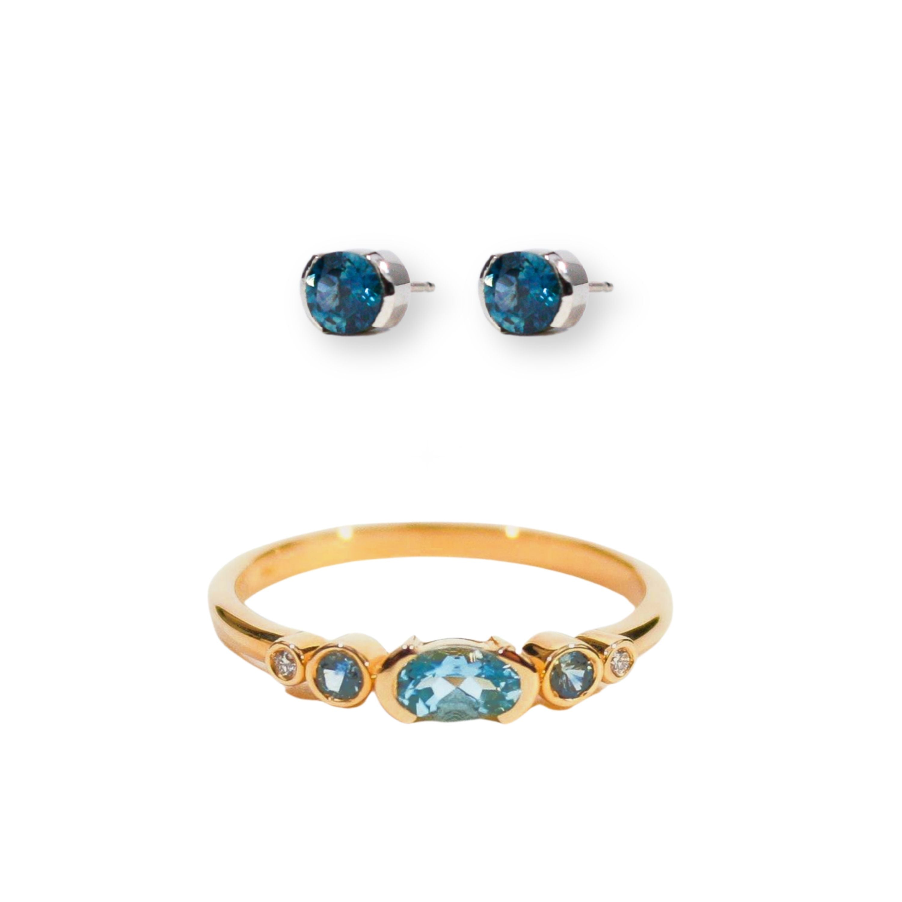 There's only one! A specially-priced sale ring stack bundle featuring a stunning graduated aquamarine, sapphire, and diamond band plus a dazzling pair of blue sapphire stud earrings