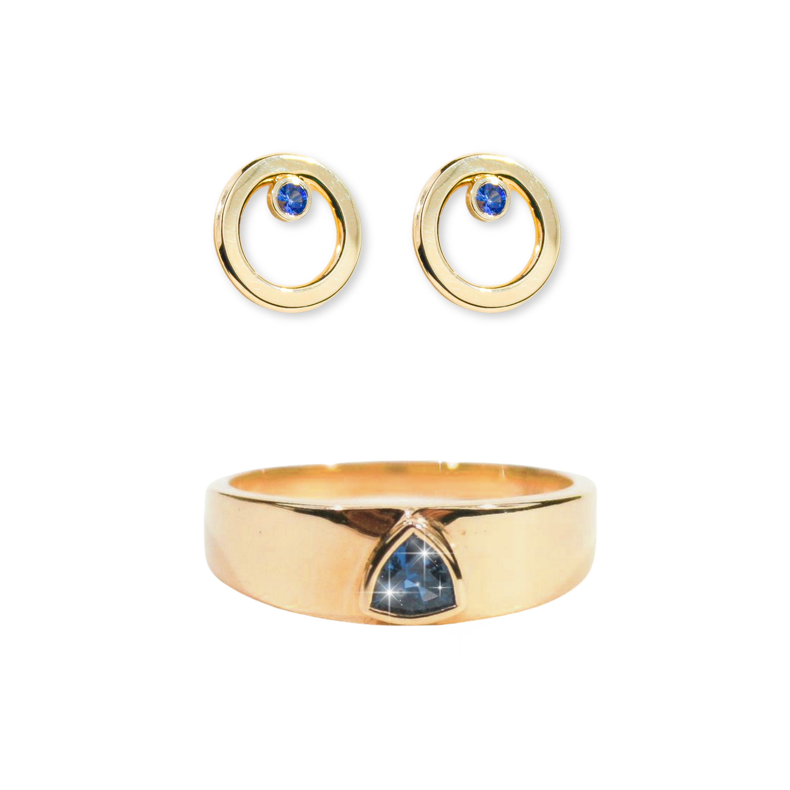 There's only one! A specially-priced jewelry bundle featuring a stunning blue sapphire on a thick cigar band and our classic eclipse hoops with gorgeous blue montana sapphires.
