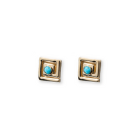 Bold golden spiral studs - accented with a turquoise cabochon, bezel-set.
