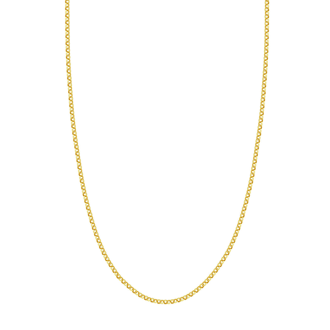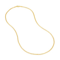 Thick, durable gold texture - this chain is great for everyday wear in a variety of of settings. We love the rounded rolo links - they're soft, beautiful, and classic choice.